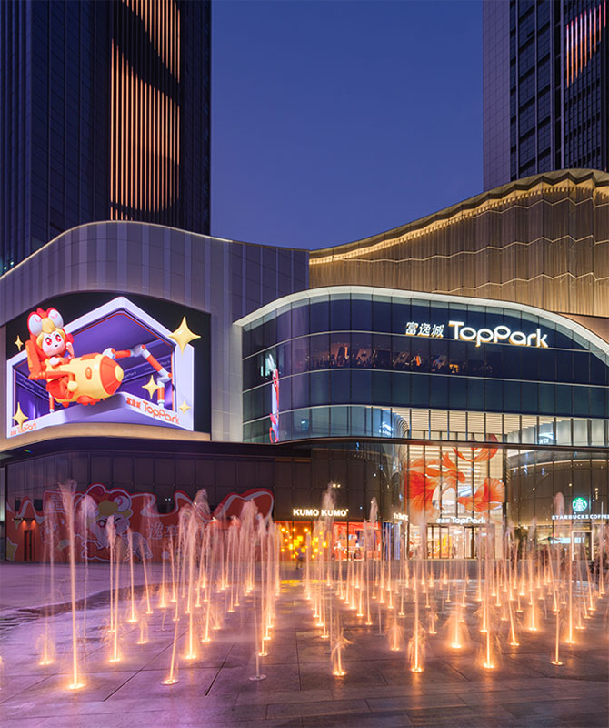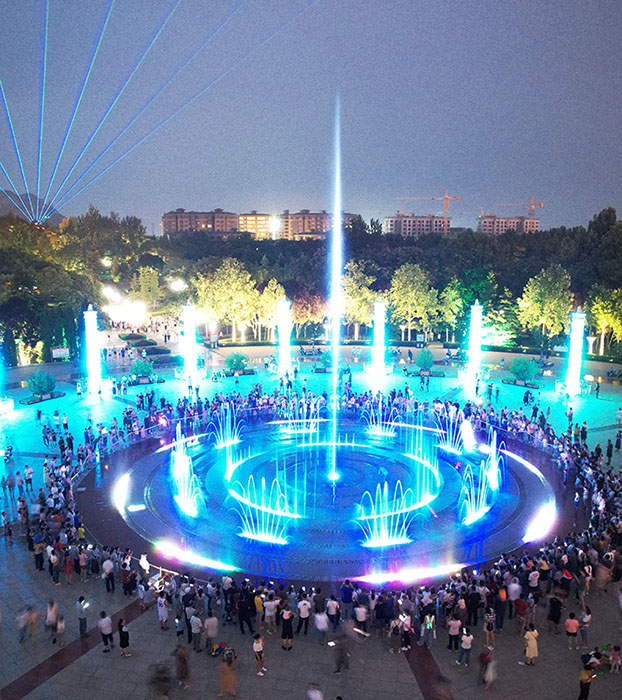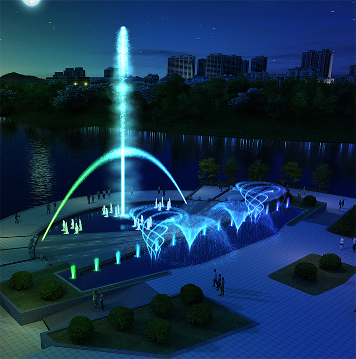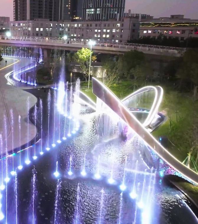广州番禺万博商务区喷泉水景与雕塑水帘